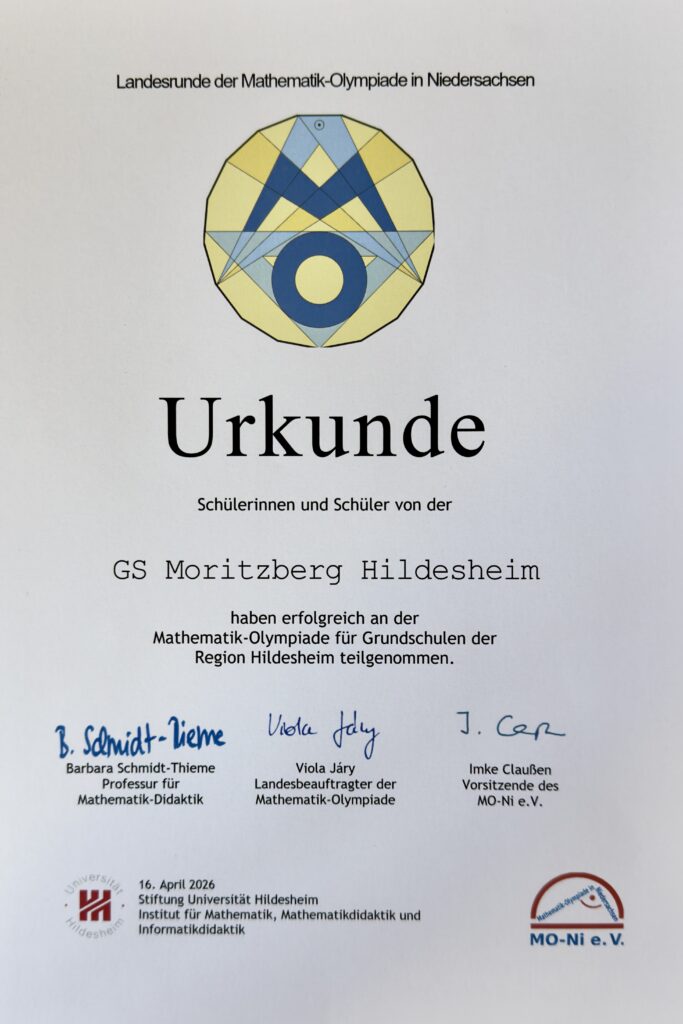 Sehr beachtliche Erfolge konnten eine Viertklässlerin und drei Viertklässler bei der gestrigen Landesrunde der Mathematik-Olympiade des Landes Niedersachsen erringen…